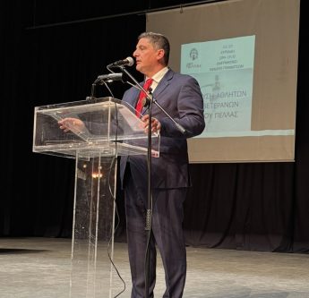 Ο Δήμαρχος Πέλλας κ. Στάθης Φουντουκίδης στον χαιρετισμό του, αφού συγχάρηκε τους