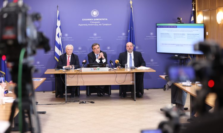Στη συνέντευξη Τύπου συμμετείχαν ο Υφυπουργός Αγροτικής Ανάπτυξης, Γιάννης Ανδριανός, ο