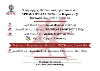 διοργάνωση του «Δρόμου Θυσίας Γιαννιτσών 2025» της Κυριακής 5 Οκτωβρίου,