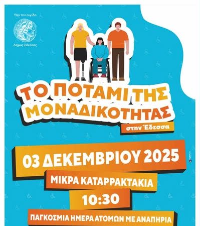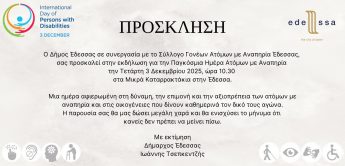 Ο Δήμος Έδεσσας τιμά την Παγκόσμια Ημέρα Ατόμων με Αναπηρία (3 Δεκεμβρίου) με ένα πλέγμα δράσεων αφιερωμένων στη συμπερίληψη, την αποδοχή και τον σεβασμό της διαφορετικότητας.