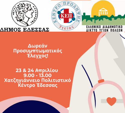 Κάλεσμα του Δήμου Έδεσσας και του ΕΔΔΥΠΠΥ στη Δράση: «Ημέρες Υγείας» στο Χατζηγιάννειο Πολιτιστικό Κέντρο Έδεσσας, την Πέμπτη 23 και Παρασκευή 24 Απριλίου