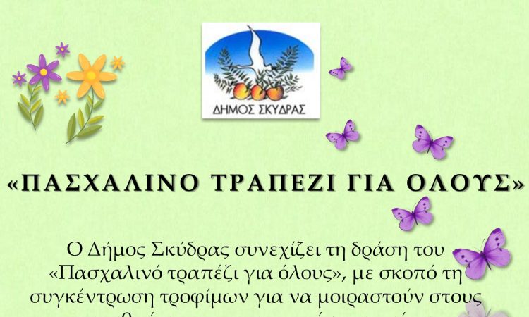 Στο πλαίσιο αυτό ο Δήμος Σκύδρας συνεχίζει τη δράση του «Πασχαλινό τραπέζι για όλους», με
