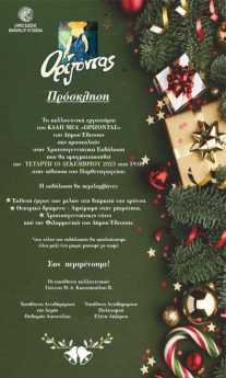 Φέτος, περισσότερο από ποτέ, τα παιδιά και οι εκπαιδευτές του ΚΔΑΠ ΜΕΑ «ΟΡΙΖΟΝΤΑΣ», μας προσκαλούν να μοιραστούμε το μήνυμα της αγάπης, της προσφοράς και της αποδοχής. Με δημιουργικότητα και χαμόγελα, ετοιμάζουν μια βραδιά υπενθυμίζοντας ότι η αληθινή μαγεία των Χριστουγέννων βρίσκεται στις μικρές, αληθινές στιγμές που μοιραζόμαστε όλοι μαζί.