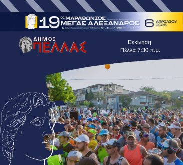 Δ.ΠέλλαςΤην Κυριακή 6 Απριλίου ο 19 ος Διεθνής Μαραθώνιος «Μέγας Αλέξανδρος»- Η εκκίνηση στην Πέλλα30/03/2025217Την Κυριακή 6 Απριλίου, με εκκίνηση από την Πέλλα και με την συμμετοχή δρομέων από όλο τον κόσμο, θα πραγματοποιηθεί...