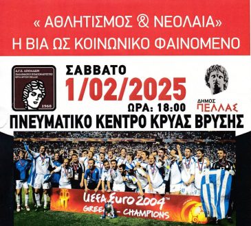 ΑθλητικάΔ.ΠέλλαςΗμερίδα στην Κρύα Βρύση Πέλλας30/01/2025291ΣΤΟΧΕΥΟΝΤΑΣ > Ημερίδα στην Κρύα Βρύση Πέλλας "Αθλητισμός και Νεολαία: Η βία ως κοινωνικό φαινόμενο". Σάββατο 1-2-2025 ωρα 18.00 Μάκης...