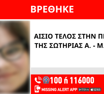 Δ.ΠέλλαςΑΙΣΙΟ ΤΕΛΟΣ ΣΤΗΝ ΠΕΡΙΠΕΤΕΙΑ ΤΗΣ ΣΩΤΗΡΙΑΣ Α. – Μ., 13 ΕΤΩΝ 27/01/202527/01/2025265Η περιπέτεια της Σωτηρίας Α. – Μ., 13 ετών, έληξε δίνοντας τέλος στην αγωνία των ανθρώπων που την αναζητούσαν. Η...