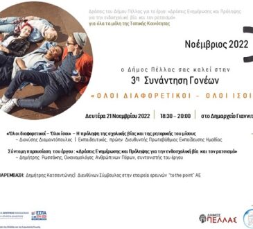 Ο Δήμος Πέλλας σας προσκαλεί στην ανοιχτή συζήτηση – διαβούλευση με θέμα: «Ψηφιακός μετασχηματισμός – Πως βλέπω το ψηφιακό μέλλον του τόπου μου» που θα πραγματοποιηθεί την Πέμπτη 17 Νοεμβρίου 2022 και ώρα 20.00 στην Αίθουσα Δ.Σ. στα Γιαννιτσά. Η παρουσία όλων των επιστημονικών, εμπορικών φορέων αλλά και όσων ιδιωτών ασχολούνται με την ανάπτυξη έξυπνων εφαρμογών και τεχνολογιών διαδικτύου είναι απαραίτητη προκειμένου να συνδιαμορφώσουμε τον ψηφιακό μετασχηματισμό του δήμου μας. Συνημμένα επισυνάπτεται η πρόσκληση «Ψηφιακός Μετασχηματισμός των ΟΤΑ - Ανάπτυξη Εφαρμογών Έξυπνων Πόλεων και Τεχνολογιών για το Διαδίκτυο των Αντικειμένων...