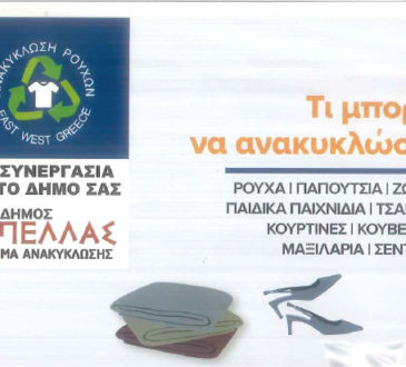 Νέοι κάδοι συλλογής μεταχειρισμένων ειδών ένδυσης στο δήμο Πέλλας  Ο δήμος Πέλλας στο πλαίσιο της περιβαλλοντικής του πολιτικής συμμετέχει εδώ...