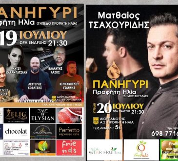 ΚαλλιτεχνικάΔιήμερο πανηγύρι 19 και 20 Ιουλίου στον Προφήτη Ηλία Σκύδρας15/07/2025543Σάββατο 19 Ιουλίου λαικοδημοτικό γλέντι, με την ορχήστρα του Γρηγόρη Σταφυλά ,στο τραγούδι η Άντζυ Καραμπατζάκη.Κυριακή 20 Ιουλίου Ο Ματθαίος...