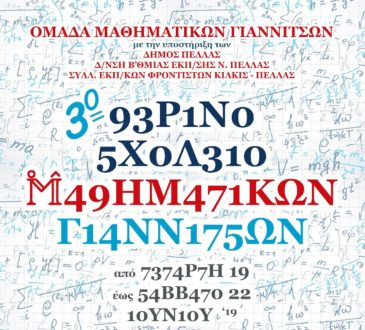 Δ.Πέλλας3ο Θερινό Σχολείο Μαθηματικών16/05/201916/05/20191.4kΗ Ομάδα Μαθηματικών Γιαννιτσών πρόκειται να διοργανώσει το 3ο Θερινό Σχολείο Μαθηματικών Γιαννιτσών από την Τετάρτη 19 έως το Σάββατο...