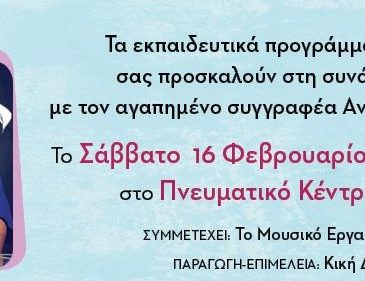 Τα εκπαιδευτικά προγράμματα "Αδέσποτος" σας προσκαλούν στη συνάντηση μαθητών με τον αγαπημένο συγγραφέα Αντώνη Παπαθεοδούλου. Το Σάββατο 16 Φεβρουαρίου 2019...